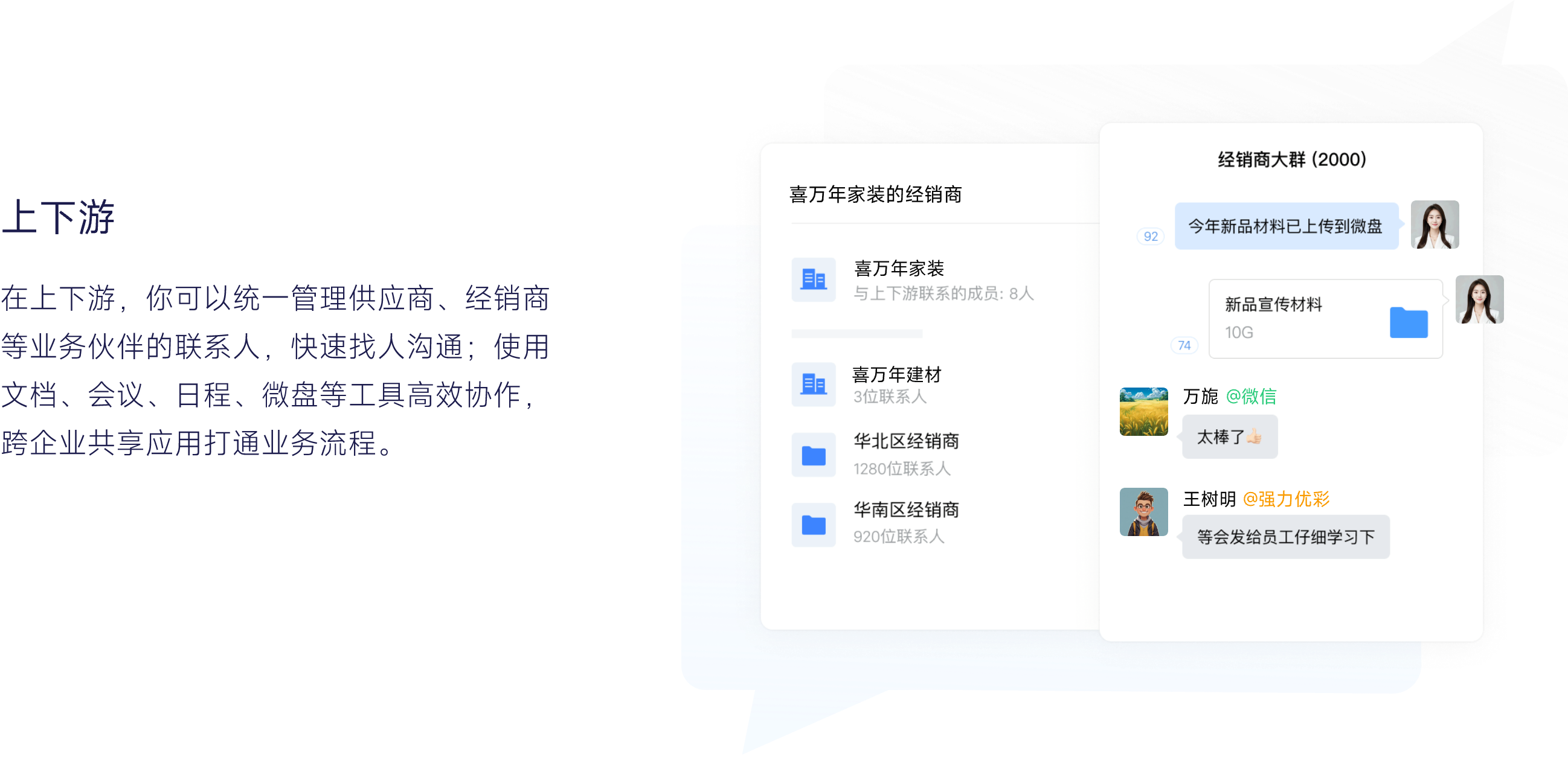 提供完整的支付能力,企业可以向外部微信用户收取支付款,也可向员工支付款或发送红包。